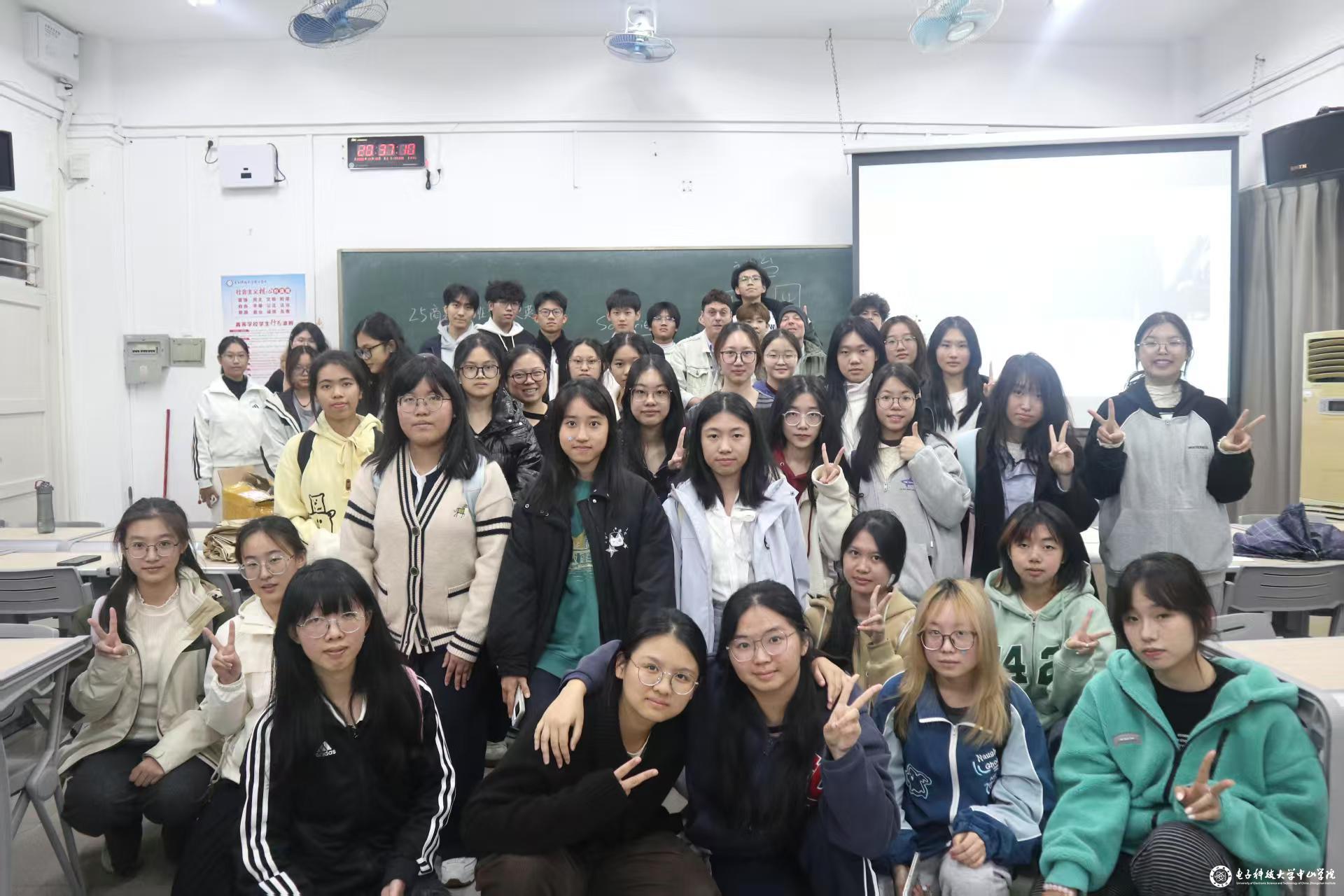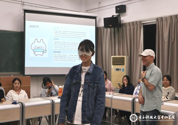 第三次英语角以“感知火花”为主题,于11月26日在4-201教室开展。开场游戏“逛三园”有效锻炼了学生的临场反应与即时表达能力。在“传声筒”环节中,每组同学与外教协作,依次传递英文句子。游戏考验听力理解、准确复述与团队协作,显著提升了参与者的语感与表达信心。“感知宝箱”游戏将活动推向高潮,不仅考验了学生的英语听力和口语描述能力,更在紧张有趣的氛围中强化了团队信任与协作精神。