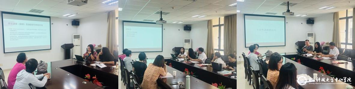 教研活动主要内容围绕如何将《理解当代中国读写教程》有效地融入大学英语教学。暑假期间,尽管《理解当代中国读写教程》实体教材还没完全到位,但老师们已经提前通过电子版相关资料深入了解了教材内容,并在多番研究后精心选取了能与原有教材《21世纪英语应用型教程》基本契合的部分来作为课堂内容的有效补充,以期通过基于听说读写译五个基本学习目标的课堂内外互动设计提升学生学习成效。