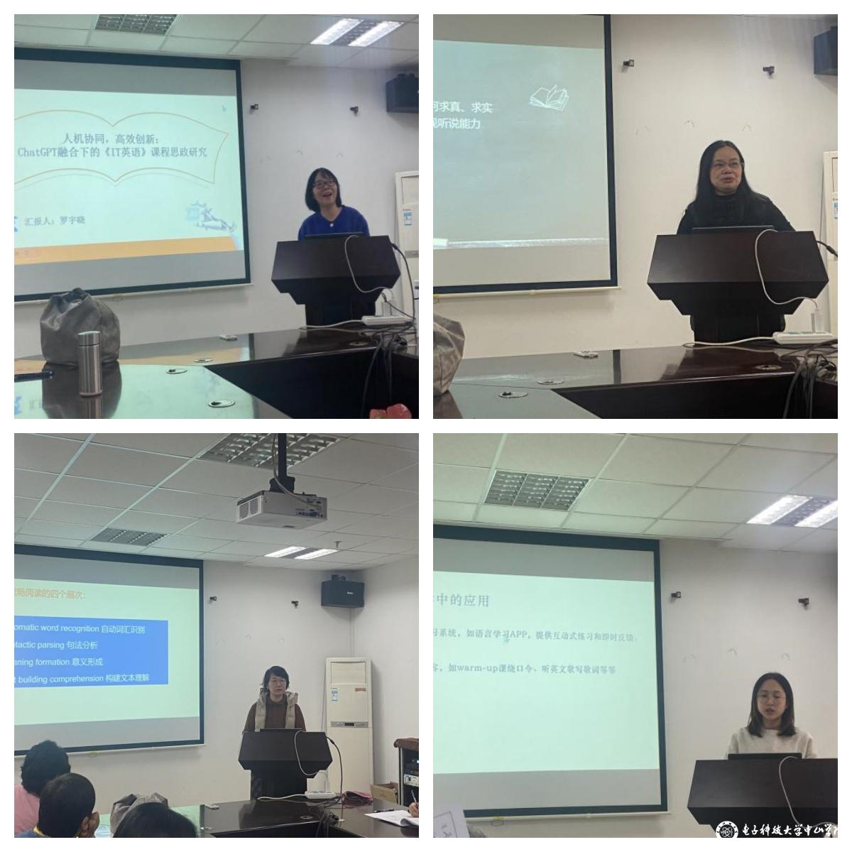 教师们通过观察和记录学生的平时学习行为、学习习惯、学情规律及其与学习成效的关联数据,为学习者画像,开展个性化教学。通过评估学生学习进程,“以评促学”,教师们实现了从“学习的科学”到“科学的学习”的路径转变。在数据学习分析的基础上,教师们建立了真正融合“教、学、评”的教学新模式,以学习者为中心,优化了形成性评价机制。吕宝萍老师在教学工作总结中,通过《理解当代中国》和《21世纪大学英语应用型教程》教学资源,运用讲授法、任务法和项目导向法等教学方法,强调了夯实学生语言基础和提高思辨能力的重要性,并通过主题讨论、写作与段落翻译等活动提升学生用英语讲好中国故事的能力。刘珍兰老师在课程总结中,通过《理解当代中国》教程的应用,包括批改网作文和英译汉小测,发现了学生在语法基础和人文素养方面的待提高方面,并推荐学生参加相关比赛取得了优异成绩。郑著运老师在课程总结中强调了因材施教的重要性,采取了选好科代表、为学生设置不同目标、及时交流反馈等措施,并思考如何在A级后维持学习兴趣和提升学生的学习效果。刘莉老师在课程总结中分享了自2023级起使用微信班群管理学生的经验,强调了其在通知发布、责任明确、课堂管理和过程考核中的优势,同时也表达了管理六个班群的挑战。