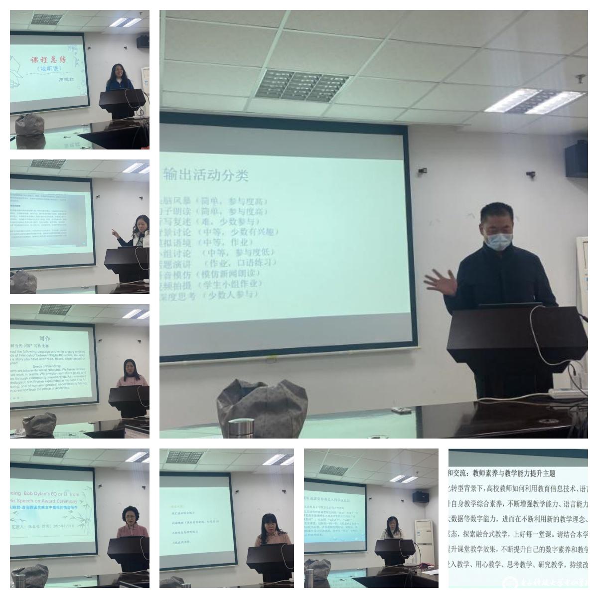 在教育数字化转型的背景下,教师们利用教育信息技术、语言智能技术、数字资源环境提升了自己的教学综合素养。通过增强教学能力、语言能力和数字能力,教师们不断适应教育新常态,探索融合式教学。本学期的课堂教学总结中,教师们分享了如何提升课堂教学效果,提升数字素养和教学能力,从而更加重视教学、投入教学、用心教学、思考教学、研究教学,持续改进教学和享受教学。周乐老师在视听说课程中利用人工智能设计了多样化的输出活动,如头脑风暴、句子朗读、听写复述、角色扮演、主题演讲和视频制作等,以提升学生的口语技能和参与度,同时反思了活动设计的有效性,并探索了如何通过增加难度和参与度来进一步满足学生的学习需求。洪璇茉老师在视听说英语教学中,探讨了教育数字化转型的影响,强调了利用教育信息技术、语言智能技术和数字资源环境来提升教师的教学能力与语言能力,以及通过更新教学理念、创新教学方法来提高教学质量和学生学习效果的重要性。刘红梅老师在课程思政中,通过“理解当代中国”写作比赛,鼓励学生深入探讨中国文化元素和中国故事,以提升学生的写作能力和文化自信。张春鸣老师通过对鲍勃•迪伦诺奖感言的分析,展示了迪伦在演讲中所体现的高情商,包括感恩与谦逊、情感共鸣与同理心、自我认知与反思,强调了情商在迪伦艺术成就和公众形象成功中的关键作用,以及对艺术家和公众人物在个人品牌建设和公众形象管理中的重要性。胡佳老师在期末课程总结中指出了视听说课堂中常见的误区,包括表面上的互动实际未引发学生自主思考、多样化教学中基础教学比例的减少、以及小组合作学习形式大于实质的问题,并强调了需要进一步思考、探索和实践以避免这些误区,提升教学效果。