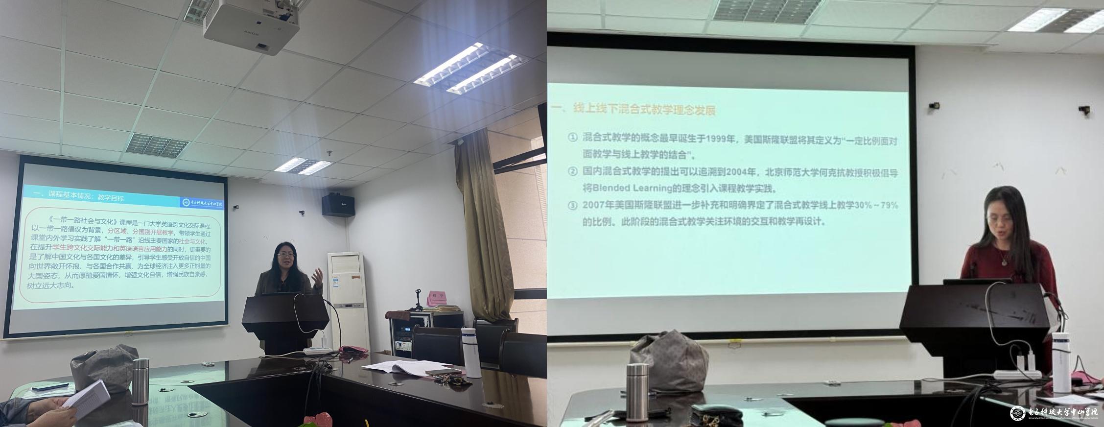 教师们围绕《问鼎网页版登录入口“建一流课程促一流专业建设”方案》进行了深入的课程建设。通过设定清晰的课程目标,构建知识图谱系统,培养核心能力素质,选用合适的教学方法,设计教学过程和评价,教师们积极推动了信息技术与教育教学的深度融合。教师们融通了线上资源与专业课堂教学,丰富了授课形态,拓展了教研成果。陈明珠老师通过构建基于PBL项目的校本大学英语后续课程群,以《一带一路社会与文化》课程为例,实施线上线下混合式教学,强调项目式学习与课程思政的融合,以实现学生智育与德育的全面发展。在《一带一路社会与文化》课程中,陈老师设定了清晰的教学目标,通过多样化的PBL项目,如角色扮演、微视频制作、知识竞赛、AI辅助教学和TED演讲,提升学生的跨文化交际能力和人文素养。刘晓佳老师在生命科学英语课程中,通过线上线下混合式教学模式,致力于实现知识培养、能力塑造、价值引领的三位一体育人目标,不断开发和优化教学资源,如微课视频和题库,并通过线上自主学习、线下课堂教学以及课后线上巩固与拓展,提升教学效率和学生的学习体验,以期达到更有效的教学效果。